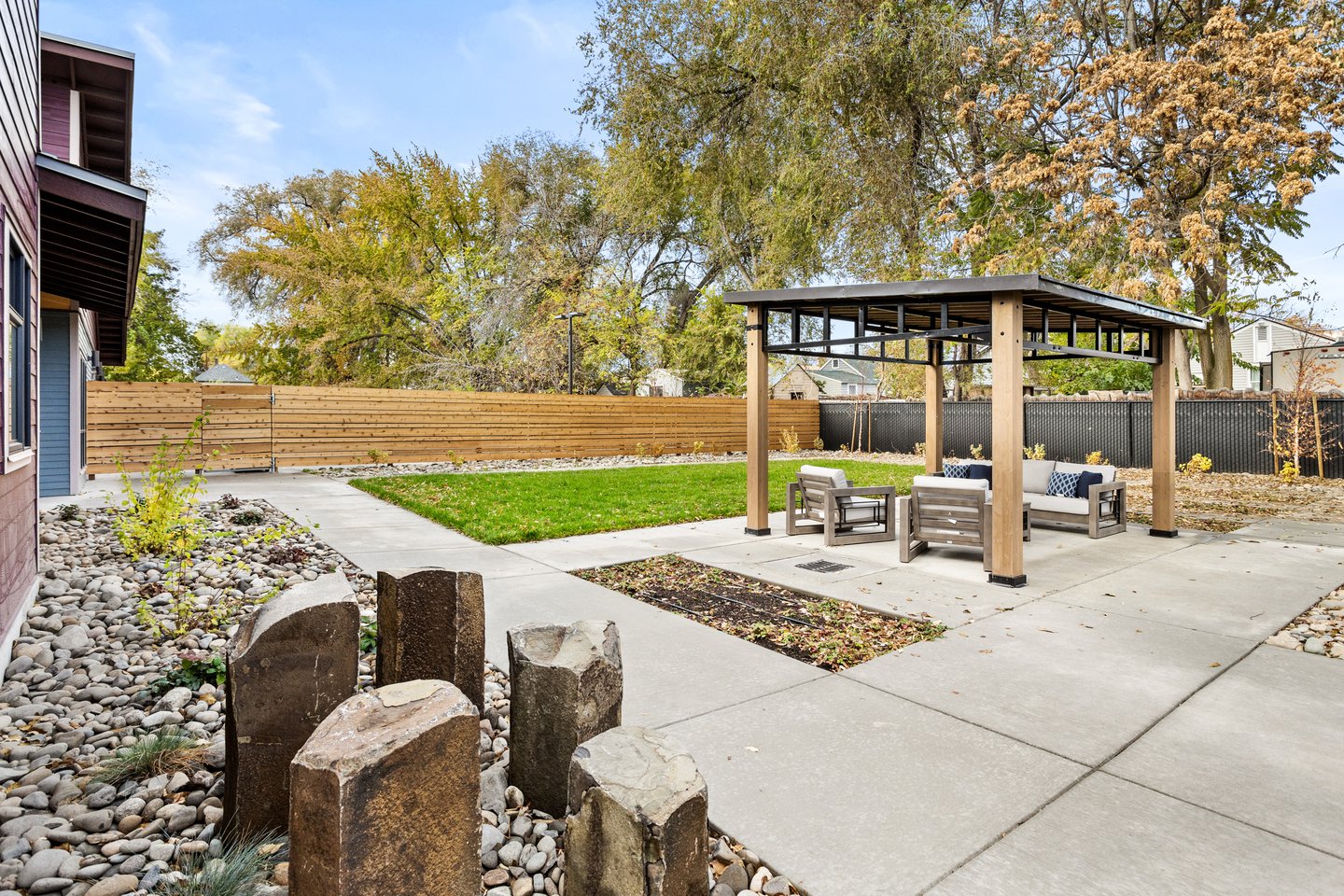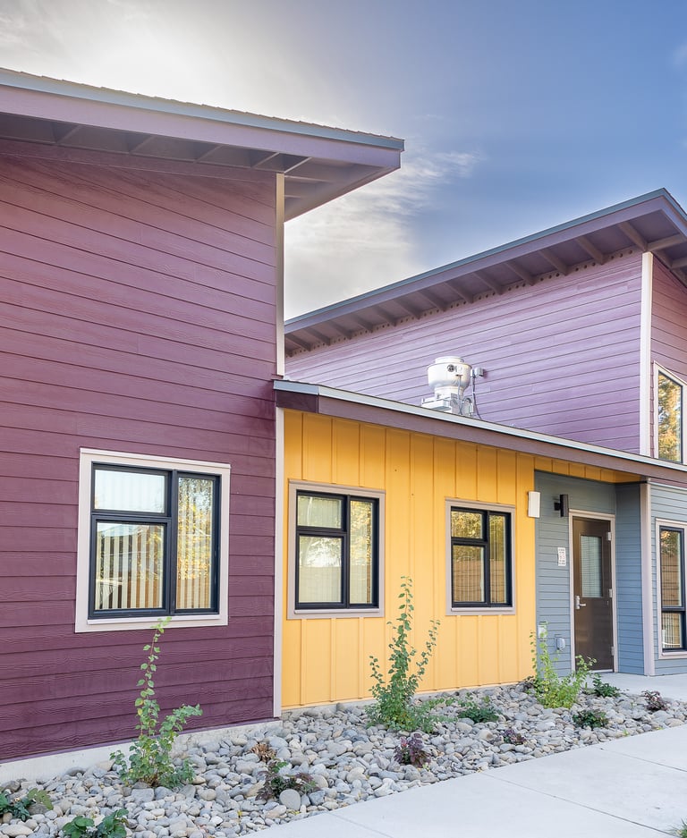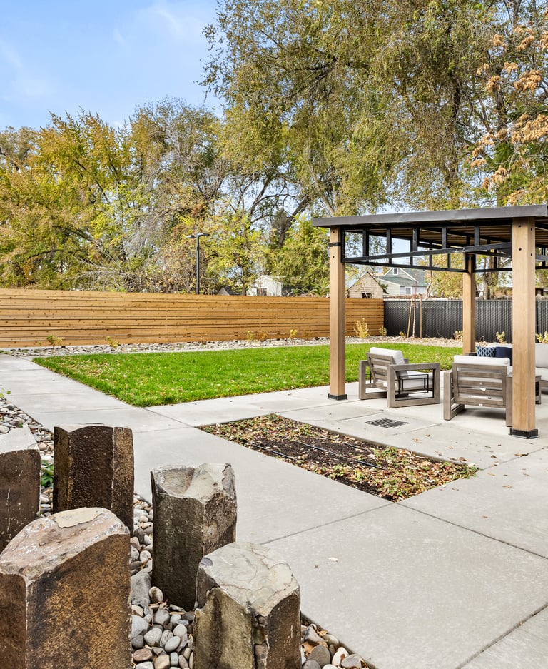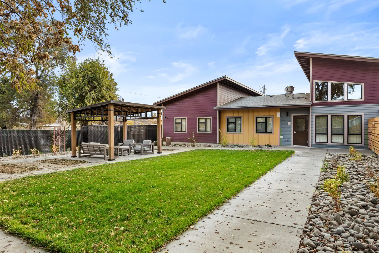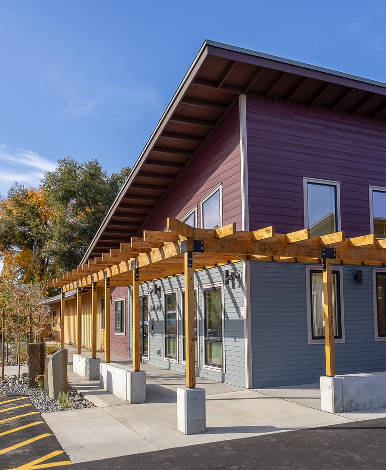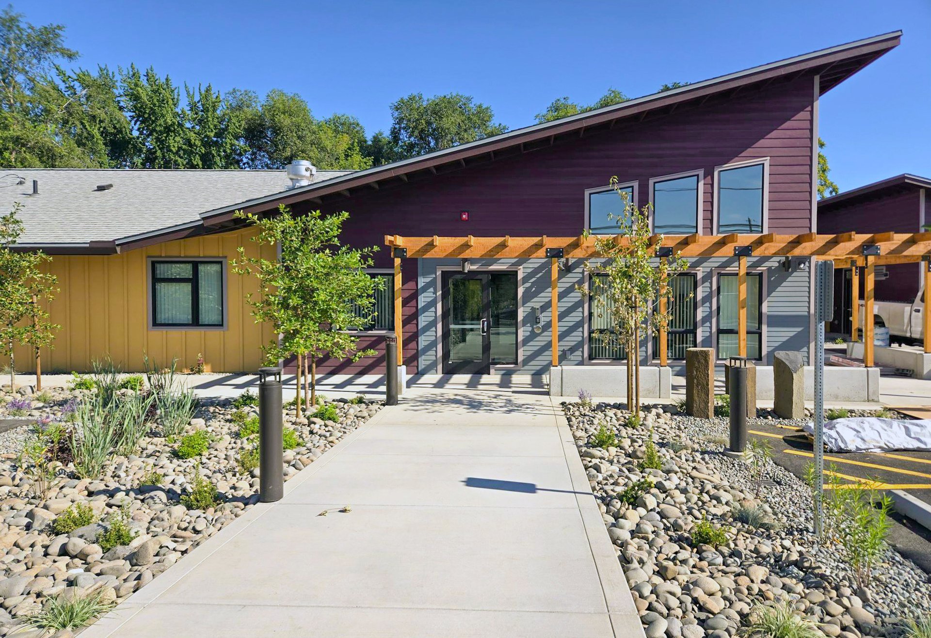 The Hope Center provides safe and welcoming shelter and support for boys. Separate building wings for different age groups are reflected in separate outdoor spaces based on developmental needs and safety. Youth, young adult, and common areas include play lawns, a ball court, gardening opportunities, and gathering and picnic areas. Drought-tolerant plants amongst rock mulch areas serve as bioretention areas and for snow melt capture in this eastern Washington landscape.