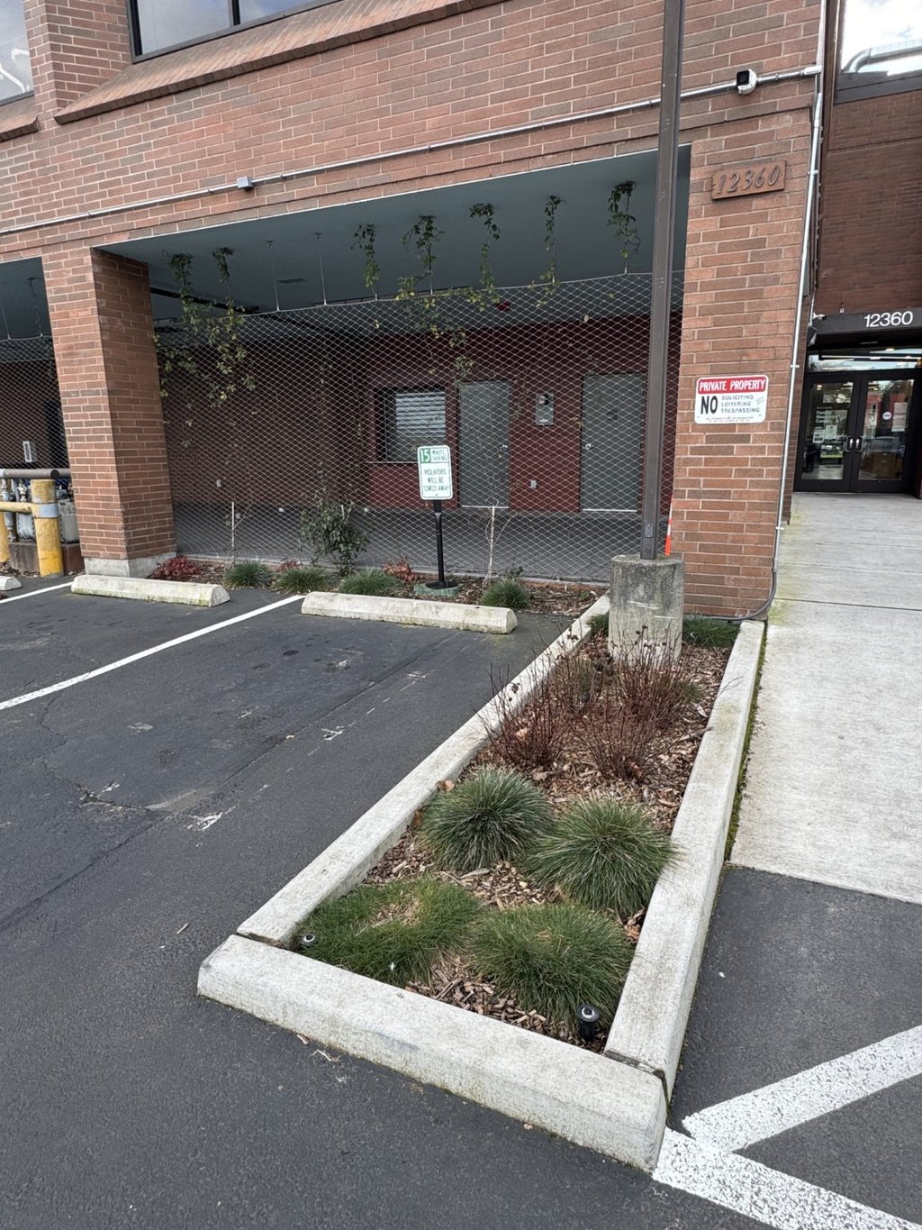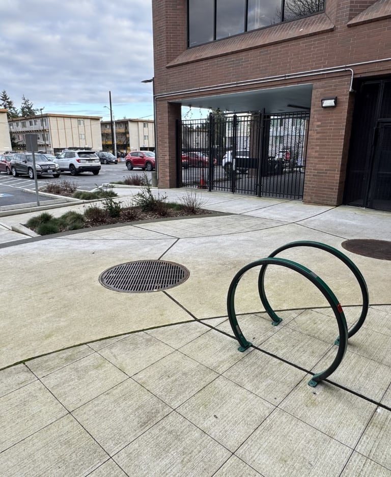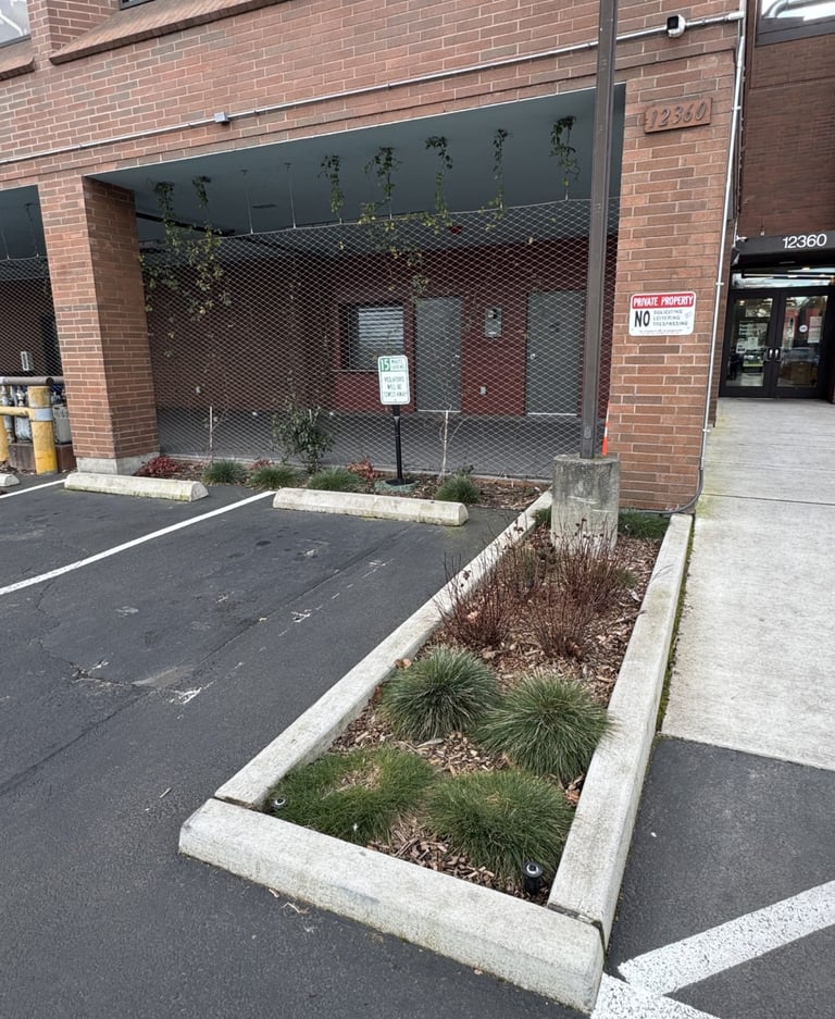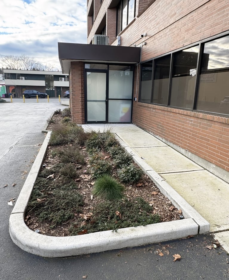 Akin is dedicated to improving the health and well-being of children and families. Their Lake City facility, with an imposing brick building and a fast-moving car-focused neighborhood, struggled to maintain safety and human scale in offering its services. A new entry path and front plaza help bring human scale and safety through a busy parking lot. A new fenced-in play area with playful synthetic turf sets up the client for future play equipment. Wire mesh and vines help to define a covered patio. New plantings, fencing, and bollards around the building create a softer, safer, and more human-scale site for kids and their families.